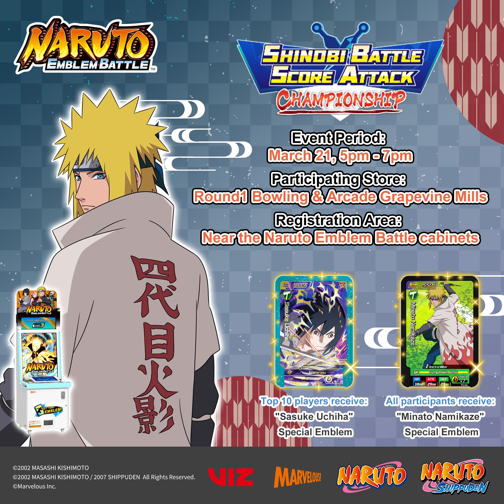On March 21, NARUTO Emblem Battle fans in Grapevine, TX will be able to put their skills to the test in Shinobi Battle Score Attack in person! From 5PM-7PM on March 21, you can visit the Round1 Bowling & Arcade Grapevine Mills location to challenge yourself to set the highest score in this action-packed gameplay mode.