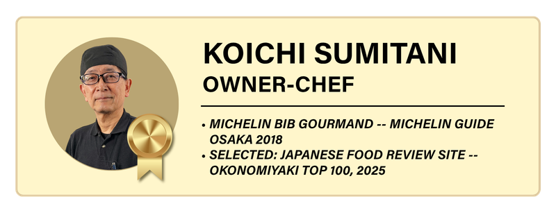 At fifty years old, Sumitani made the decision most people advised against: he left his corporate career, entered the restaurant world with no professional culinary experience, and spent years obsessively refining batter ratios and cooking techniques at home. In December 2008, he opened Okonomiyaki Hana near Osaka Business Park.