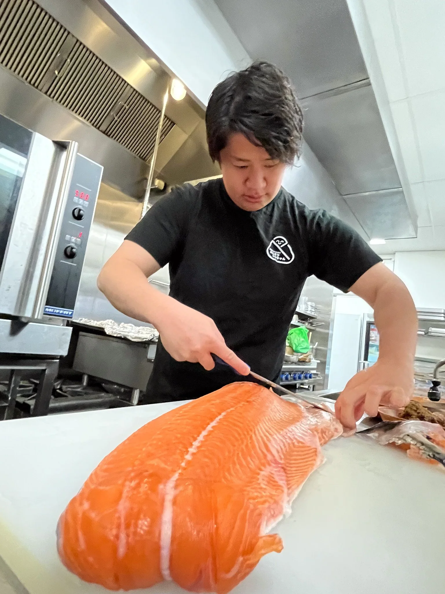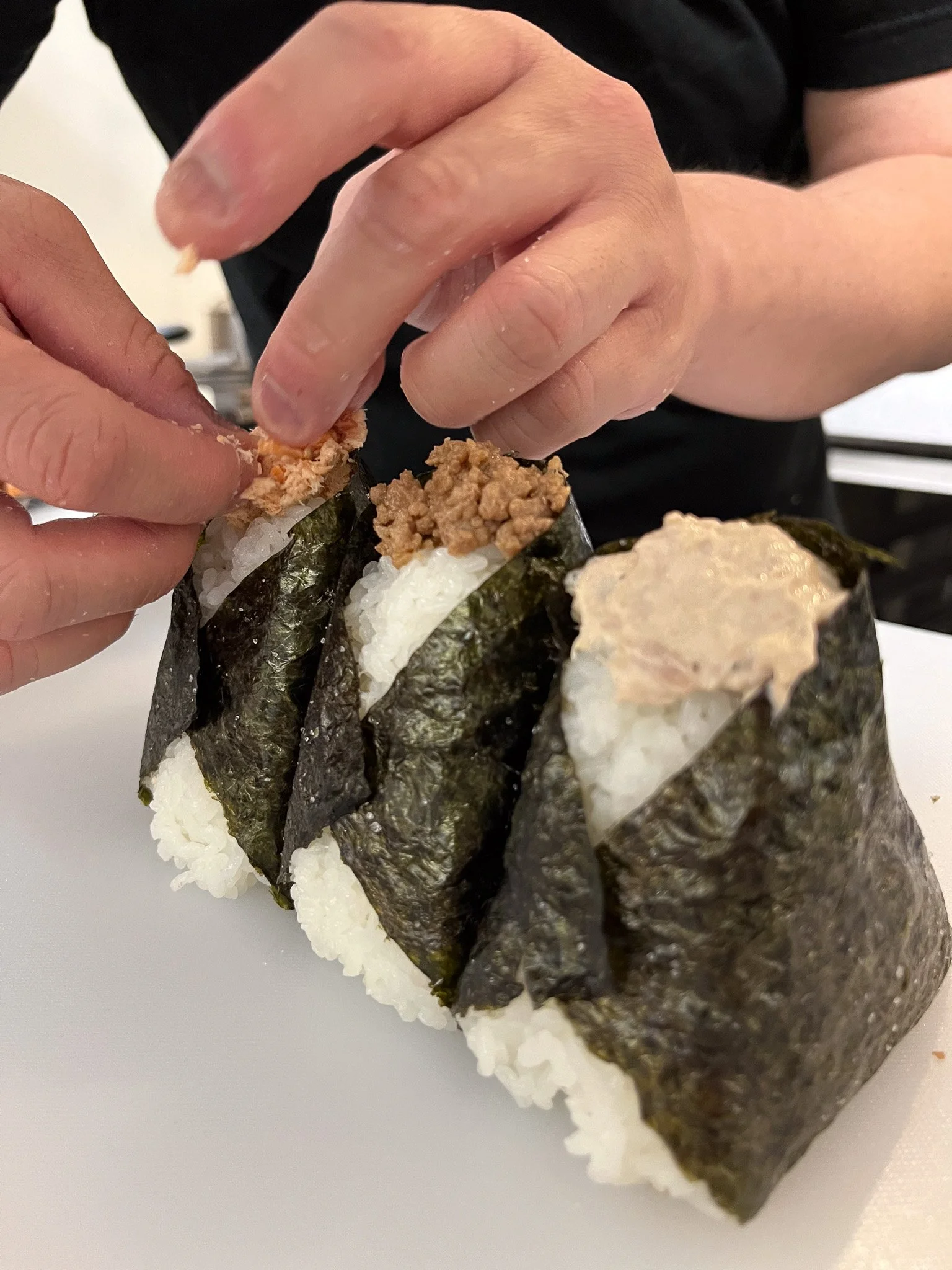 Their shaping method reflects a background in sushi. Each rice ball is pressed only twice, creating a balance that holds its shape while remaining soft and delicate. Wrapped in fragrant seaweed, the onigiri maintains a light structure that releases subtle umami and sweetness with every bite.