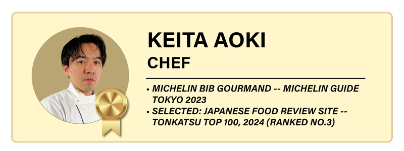 Now bringing TONKATSU KEITA to the United States, Chef Keita is eager and openly curious about how American diners will receive his food. His hope is straightforward: that one bite will be enough to make tonkatsu a dish people here fall in love with just as deeply as he did.