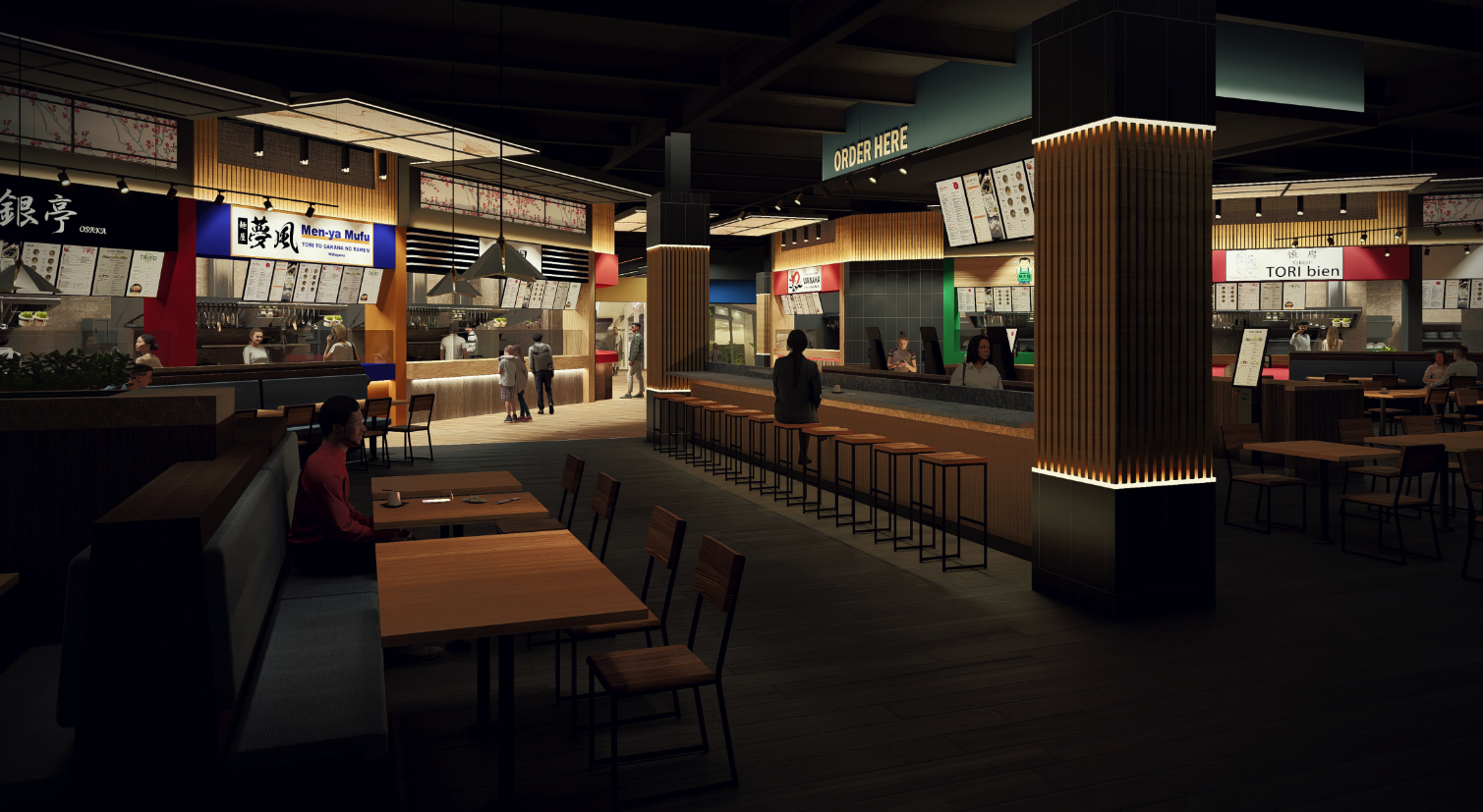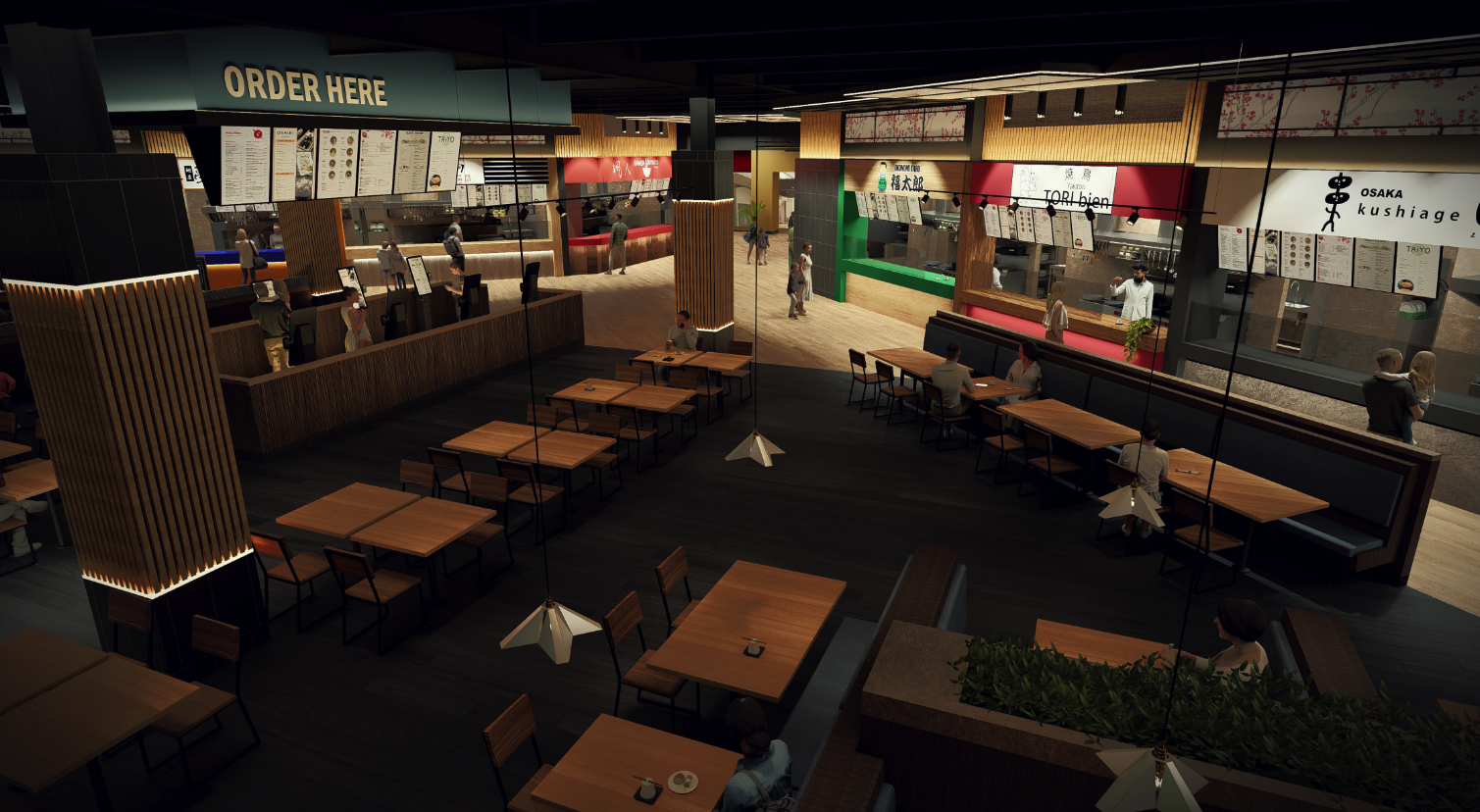 • Kid-friendly food hall style